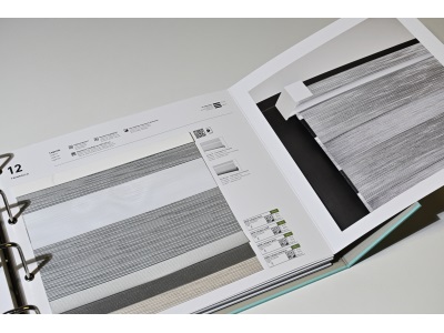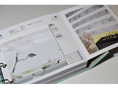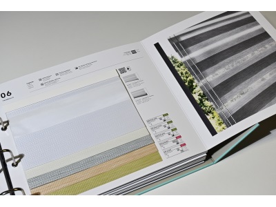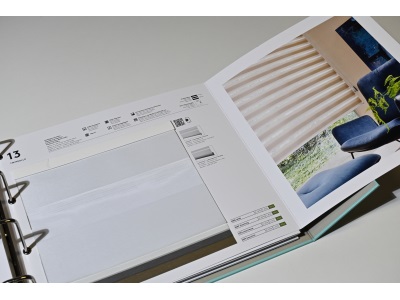 - tkaniny se speciálními efekty, QR kódy na kartách vzorkovnice vedou k filmům